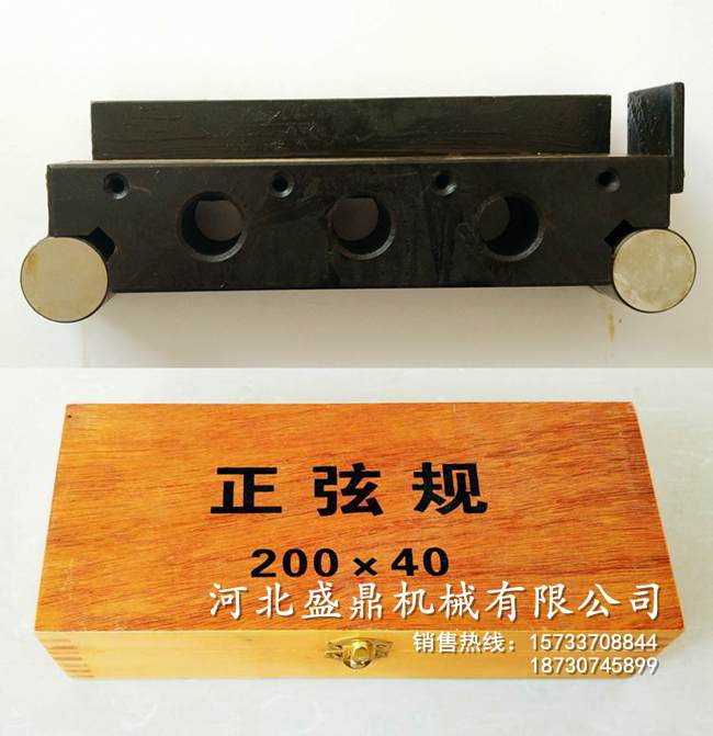正弦規(guī)是根據(jù)正弦原理設(shè)計(jì)的是用于精密測(cè)量角度的計(jì)量器具。正弦規(guī)測(cè)量角度是以利用直角三角形的正弦函數(shù)為基礎(chǔ)的。通常用來測(cè)量帶有錐度或角度的零件。因?yàn)樗臏y(cè)量結(jié)果,是通過直三角形的正弦關(guān)系來計(jì)算的,所以被稱為正弦規(guī)。它主要由一準(zhǔn)確鋼制長方體—主體和固定在其兩端的兩個(gè)相同直徑的鋼圓柱體組成。其兩個(gè)圓柱體的中心距要求很準(zhǔn)確,兩圓柱的軸心線距離L一般為100毫米或200毫米兩種。工作的時(shí)候,兩圓柱軸線與主體嚴(yán)格平衡,而且與主體相切。正弦規(guī)一般是用來測(cè)量小于45°的角度,在測(cè)量小于30°的角度時(shí),準(zhǔn)確度可達(dá)3″~5″。