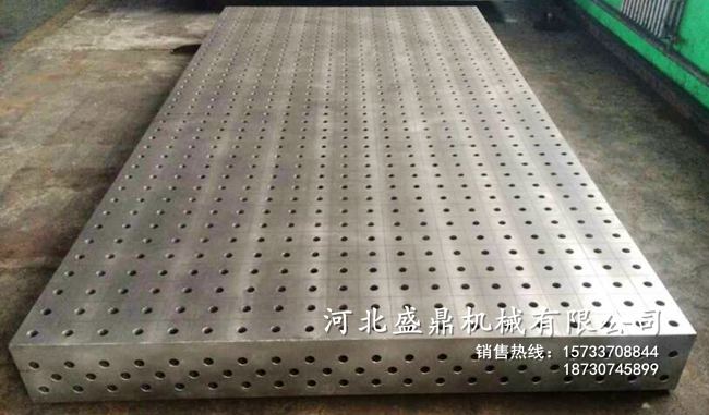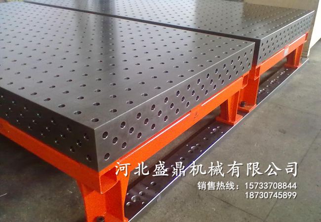 柔性三維組合焊接工裝平臺(tái)的承載能力高,鋼性穩(wěn)定,它的五個(gè)面均加工有規(guī)則的孔,并刻有網(wǎng)線。焊接平臺(tái)可方便地延伸和擴(kuò)展,組合。經(jīng)擴(kuò)展的標(biāo)準(zhǔn)臺(tái)面可模塊化的定位和夾緊直接連接在一起。在安裝、調(diào)整和定位工件過程將柔性三維組合焊接工裝系統(tǒng)的通用功能展示的淋漓盡致,尤其在了大型工件方面的應(yīng)用上。